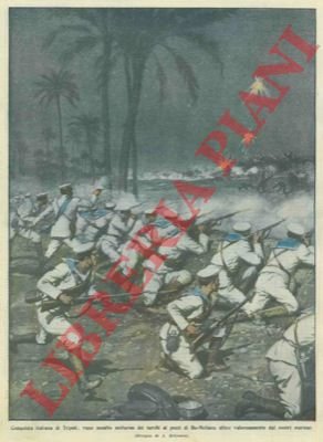 Vano assalto turco ai pozzi Bu-Meliana che i nostri marinai difendono valorosamente.
