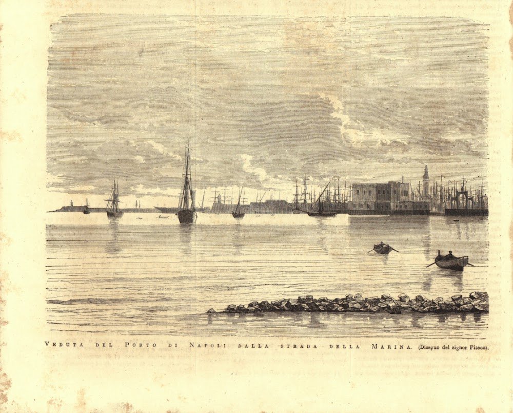 Veduta del porto di Napoli dalla strada della Marina. Stampa 1876