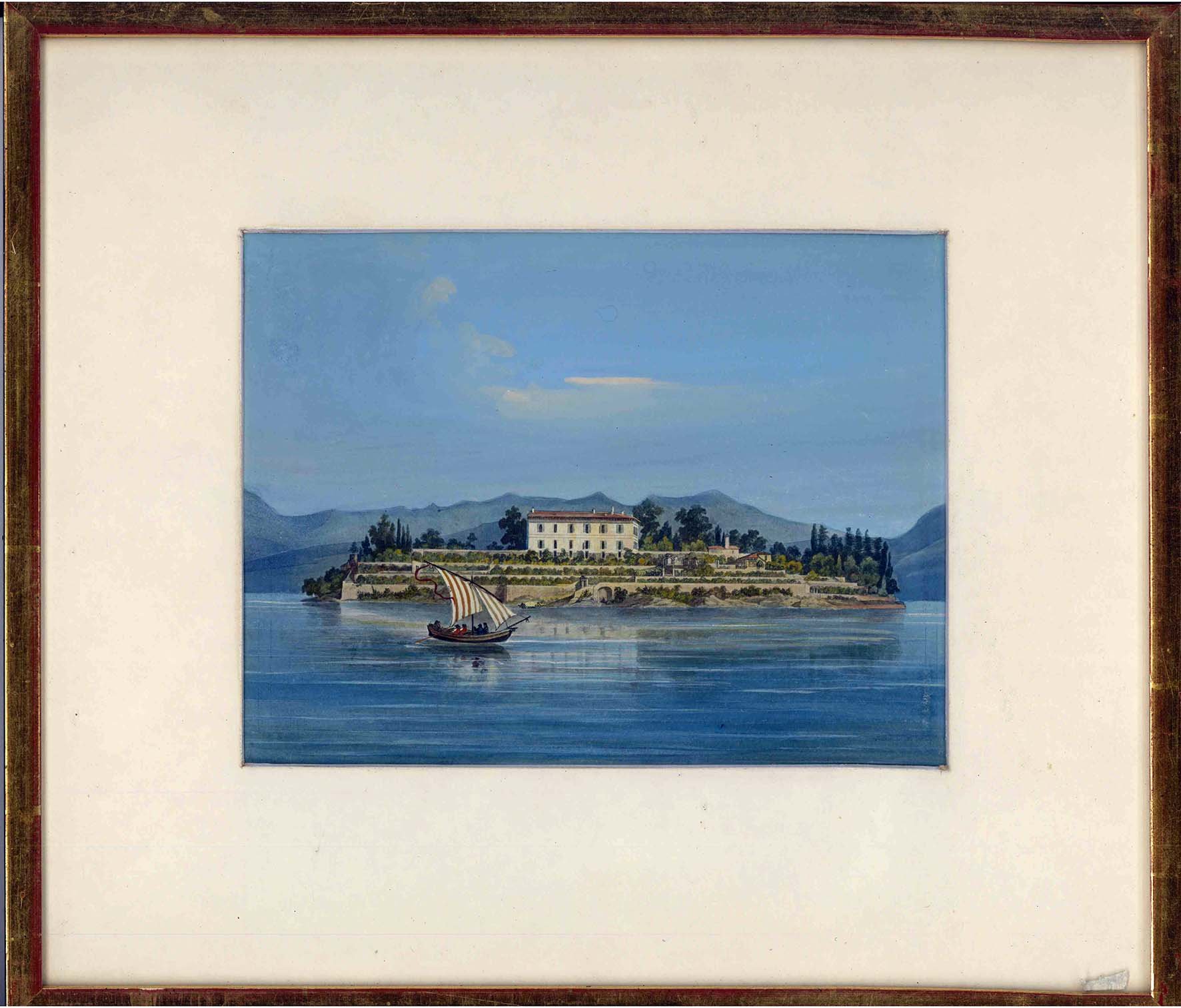 Veduta dell'Isola Madre sul Lago Maggiore con il Palazzo Borromeo e il celebre giardino inglese. Circa 1840/'50