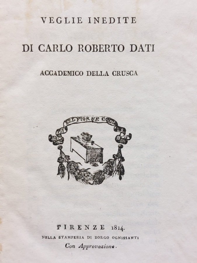 Veglie inedite di Carlo Roberto dati accademico della Crusca. [UNITO A:] Esortazione allo studio della geometria. [UNITO A:] La protezione de' grandi fomenta le lettere, e le lettere fanno i principi illustri. Intrepidezza de' guerrieri moderni nel farsi curare le ferite preferita a quella degli antichi.