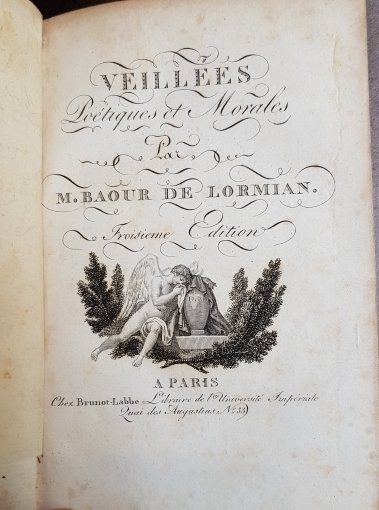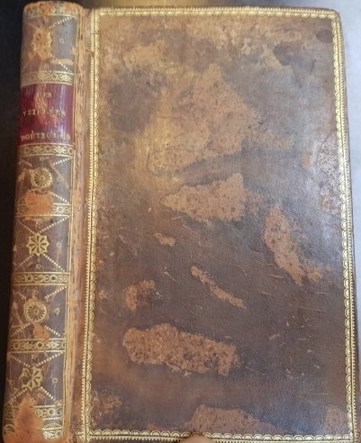 In-12°, pp. (2), 239, bel frontespizio inciso e 4 tavv. f.t., bella legaura coeva in piena pelle color nocciola, al dorso titolo su tasello e fregi in oro, ai piatti duplice cornice in oro, carte di guardia in carta decorata. Tagli marmorizzati.