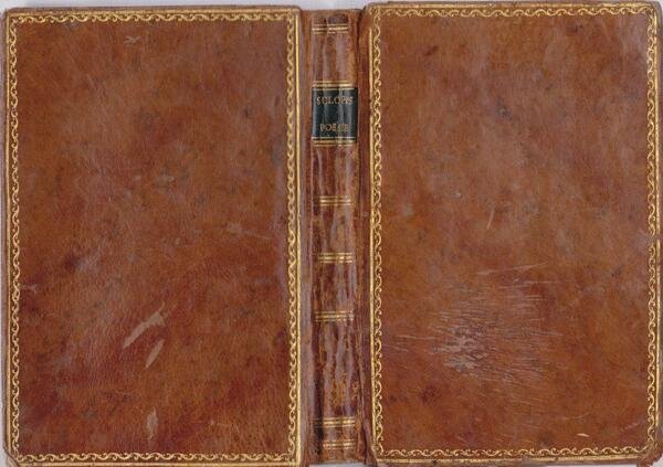 In-8°, pp. 131, bella legatura in piena pelle dell'epoca, titolo su tass. al dorso, ai piatti cornice a motivi geometrici in oro. Piccola mancanza di carta al margine esterno basso del frontespizio senza alcuna perdita di testo. Bell'esemplare fresco su carta forte.