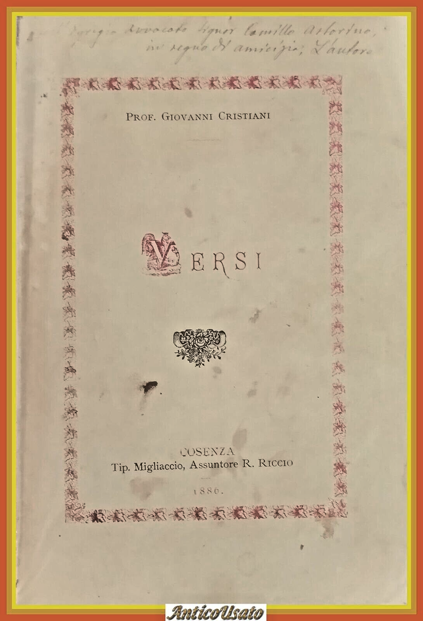 VERSI del Professor Giovanni Cristiani 1886 Cosenza Migliaccio Libro antico | Libri antichi e moderni |