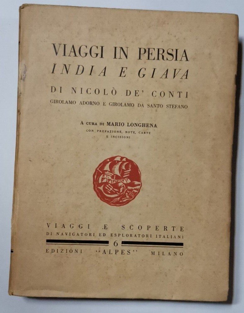 VIAGGI IN PERSIA INDIA E GIAVA di Nicolò De Conti 1929 Alpes libro illustrato