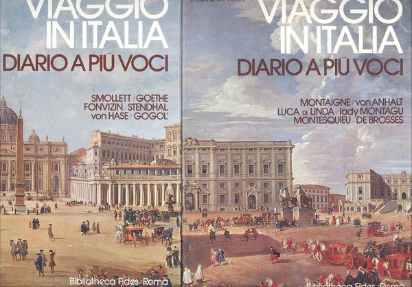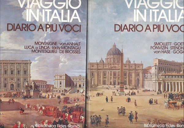 OPERA IN DUE VOLUMI IN 8° COSI' RIPARTITI : VOL.1°), TESTI DI MONTAIGNE - VON ANHALT - LUCA DI LINDA - LADY MONTAGU - MONTESQUIEU - DE BROSSES. pp.268, INDICE, CON 48 TAV.<BR>f.t.in b/n. VOL.2°), TESTI DI SMOLLETT - GOETHE - FONVIZIN - VON HASE - GOGOL - STENDHAL.<BR>pp.301, CON 48 TAV.f.t. in b/n. COPERTINE EDITORIALI RIGIDE IN PIENA TELA CON TITOLO AL DORSO + SOVRACOPERTINE ILLUSTRATE A COLORI CON TITOLO. RACCOLTA DI PAGINE DEDICATE ALL'ITALIA DA VIAGGIATORI, LETTERATI, SCIENZIATI ED ARTISTI LUNGO OLTRE TRE SECOLI ( DA MONTAIGNE ALLA FINE DELL'OTTOCENTO ). OPERA FACENTE PARTE DELLA BIBLIOTHECA FIDES. OTTIMA CONSERVAZIONE. ID, 5047
