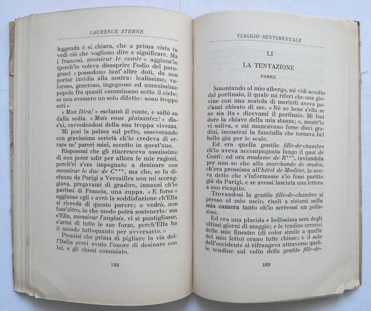 VIAGGIO SENTIMENTALE DI YORICK di Laurence Sterne. Lungo la Francia e l'Italia. A cura di Adriano Seroni. Traduzione di Ugo Foscolo.