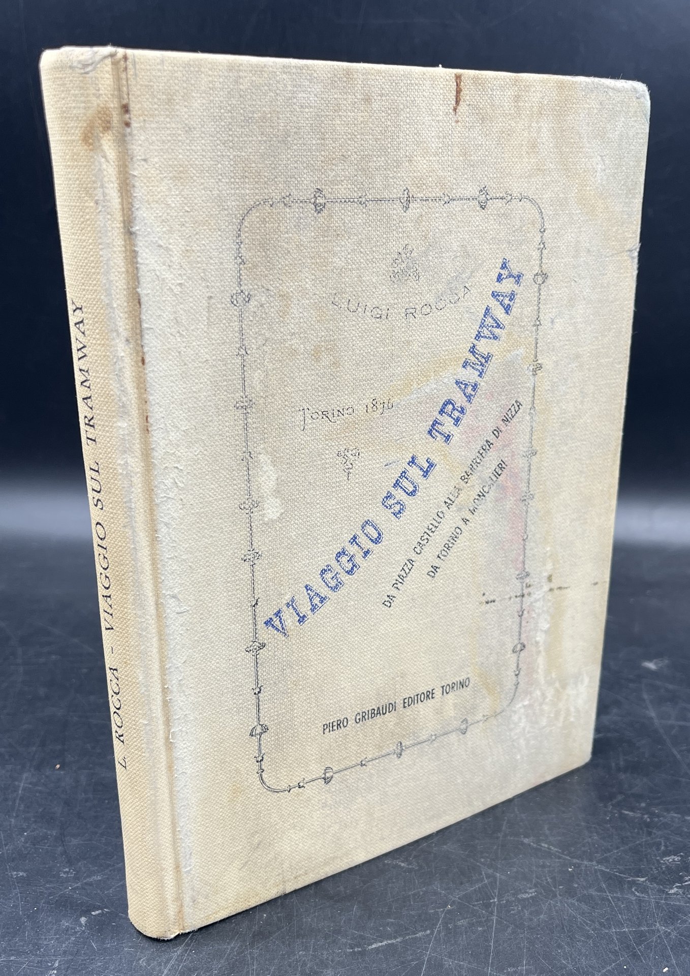 In-8° (cm. 21,7x15,7), pp. 206. Confitte note sulla vita e le feste torinesi. Tela edit. Vistose ombre da aloni al piatto anteriore, solido e compatto, ottimo il resto. "Non mi va guari a genio il sistema di far penetrare i Traway sino nel cuore della città. fruste. campanelli . continuo pericolo di scontri"