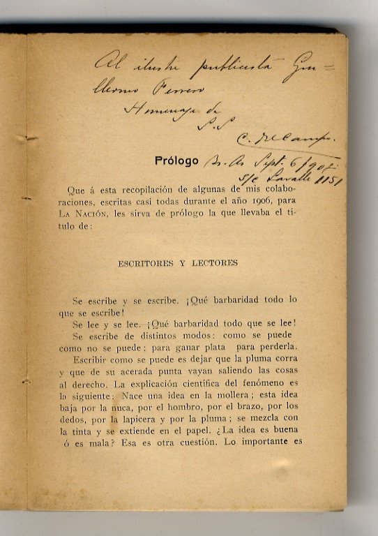 Buenos Aires, M. Rodrigues Giles, 1908, in-16, br., pp. 319, (5). Minimi difetti al dorso. Prima edizione, con dedica autografa dell'autore.