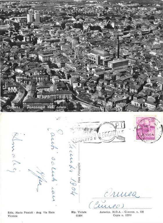 Vicenza. Panorama dall'aereo. Viaggiata 1964