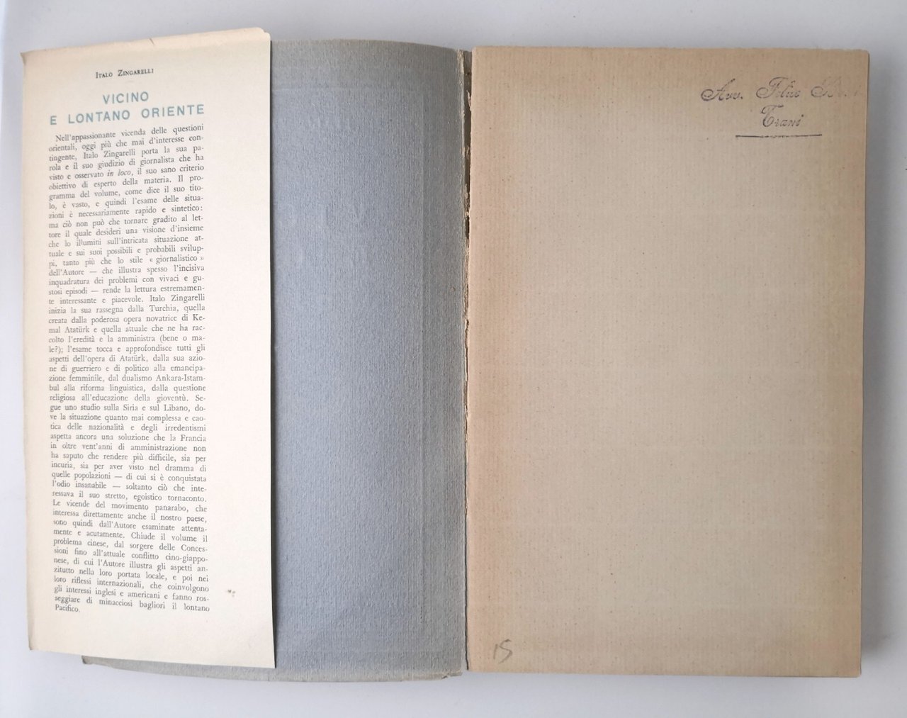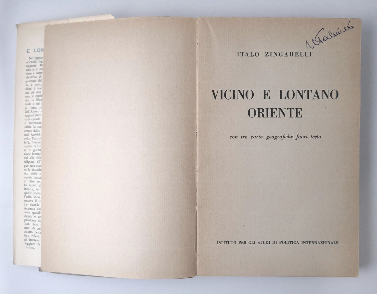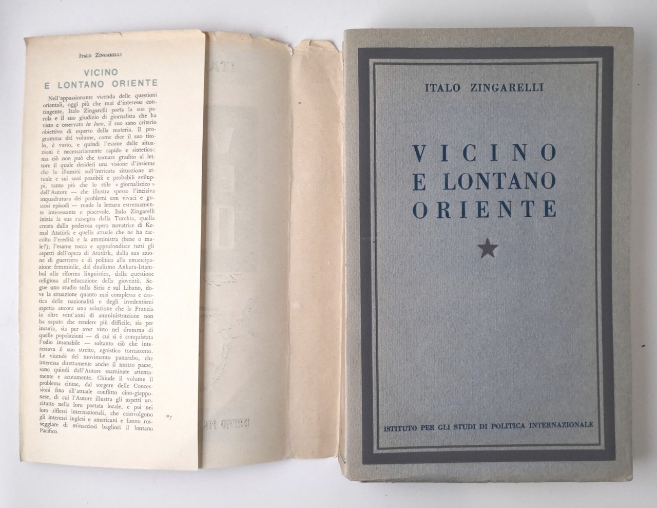 VICINO E LONTANO ORIENTE di Italo Zingarelli 1940 ISPL libro studi politca