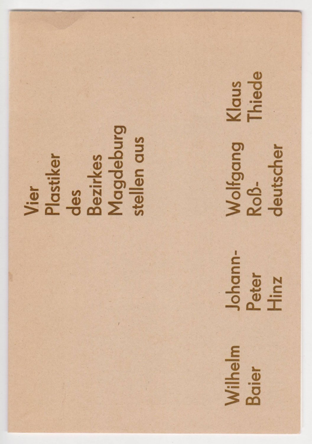 Vier Plastiker des Bezirkes Madgeburg stellen aus.