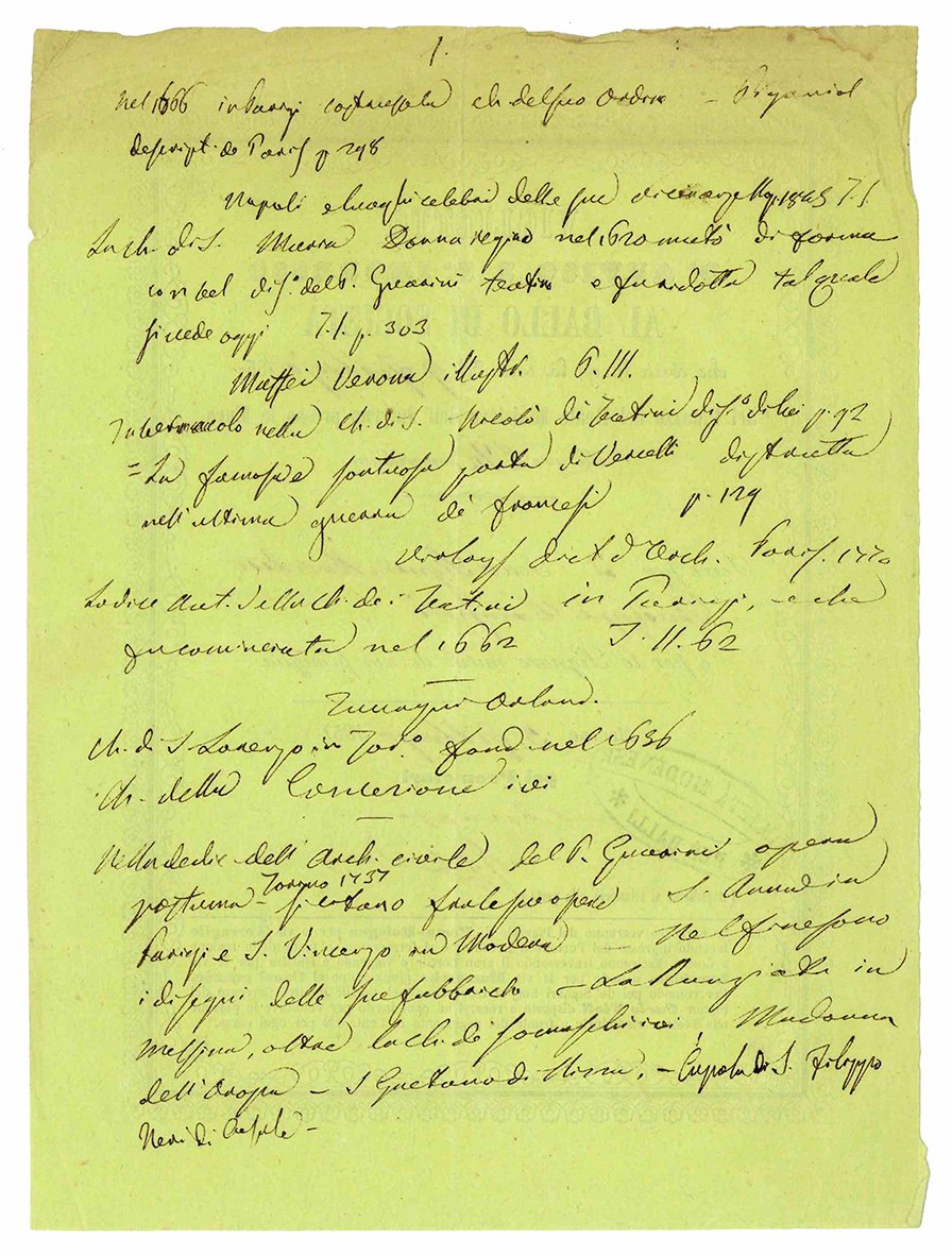 Foglio volante stampato su carta verdina (mm 220x163). Testo stampato entro elegante cornicetta, spazi lasciati bianchi compilati successivamente in forma manoscritta. Note manoscritte al verso.