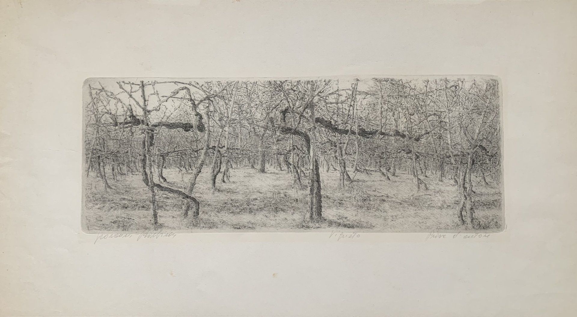 Prova d'autore. acquaforte inciso cm. 49,5 x 18,5 - foglio cm. 68,2 x 37,2 Buono (Good) Buon es., piegature, carta leggermente brunita, tracce di nastro adesivo sul retro.