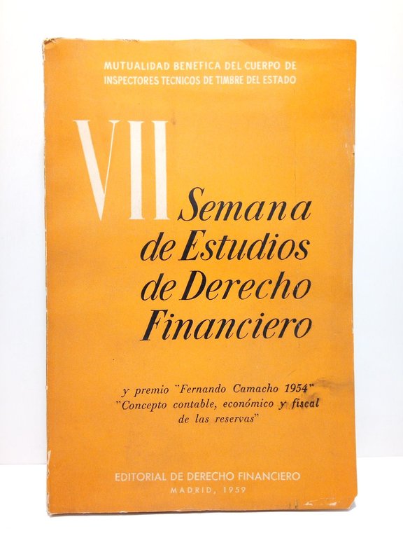 VII Semana de Estudios de Derecho Financiero. Y Premio "Fernando Camacho 1954" "CONCEPTO CONTABLE, ECONOMICO Y FISCAL DE LAS RESERVAS" / por Mariano Tartón Marco