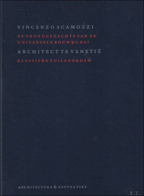 Gebonden in blauwe band,orig. in-folio, NL.editie, 362 pp. 325 x 245 x 35 mm, afb. in kleur en zw/w., in zeer goede staat. ISBN 9789071570926. De Italiaanse architect Vincenzo Scamozzi (1548-1616) was de opvolger van Andrea Palladio en schreef een belangwekkend architectuurtractaat over klassieke architectuur. Hij haalt daarin veelvuldig zijn collega architecten aan en met name ook zijn grote voorbeeld uit de oudheid, Vitruvius. Reeds twee delen uit een reeks van drie publicaties zijn in een nieuwe vertaling verschenen. De oorspronkelijke tekst is in het Italiaans en was in de Gouden Eeuw van groot belang voor onder meer de bouw van de Amsterdamse grachtengordel. Om die reden is destijds ook al een aantal boeken van Vincenzo Scamozzi vertaald in het Nederlands. Voor het eerst verschijnt de serie ook in het Engels. De boeken zijn geillustreerd met recent beeldmateriaal en met prenten uit de originele boeken.isbn: 9076863164