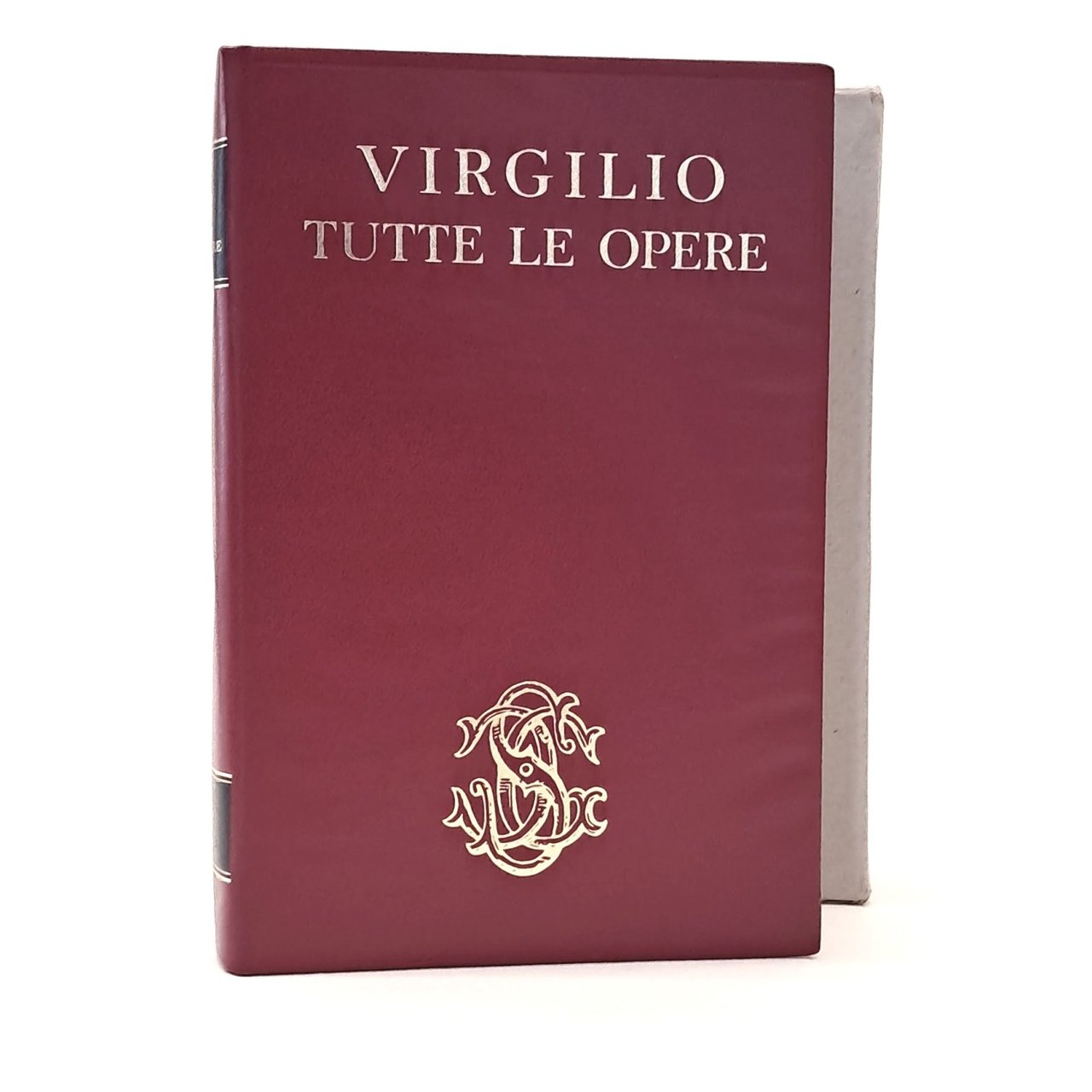 PRIMA EDIZIONE nella collana Le voci del mondo. Con un saggio di Antonio La Penna e testo a fronte. Publio Virgilio Marone, più semplicemente noto come Virgilio, è stato un poeta romano. Autore di tre delle più famose opere della letteratura latina, al poeta vengono anche attribuiti una serie di componimenti giovanili la cui autenticità rimane però oggetto di dubbio. Sue sono le "Bucoliche", le "Georgiche" e l’"Eneide". Per l’influenza fortissima che ha esercitato nella letteratura a lui successiva per lungo tempo e per il suo sublime senso dell’arte, Virgilio può tranquillamente vantare il titolo di massimo poeta di Roma. A lui il massimo tributo da Dante Alighieri, che lo rende guida dell’Inferno e del Purgatorio nella sua Divina Commedia. Copertina in similpelle con cofanetto di cartone. Pp. 888. Ottime condizioni.