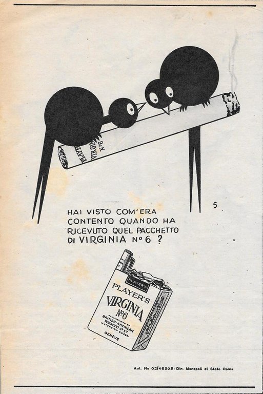 Virginia Player's n. 6. 5. Hai visto com'era contento quando ha ricevuto... Advertising 1956