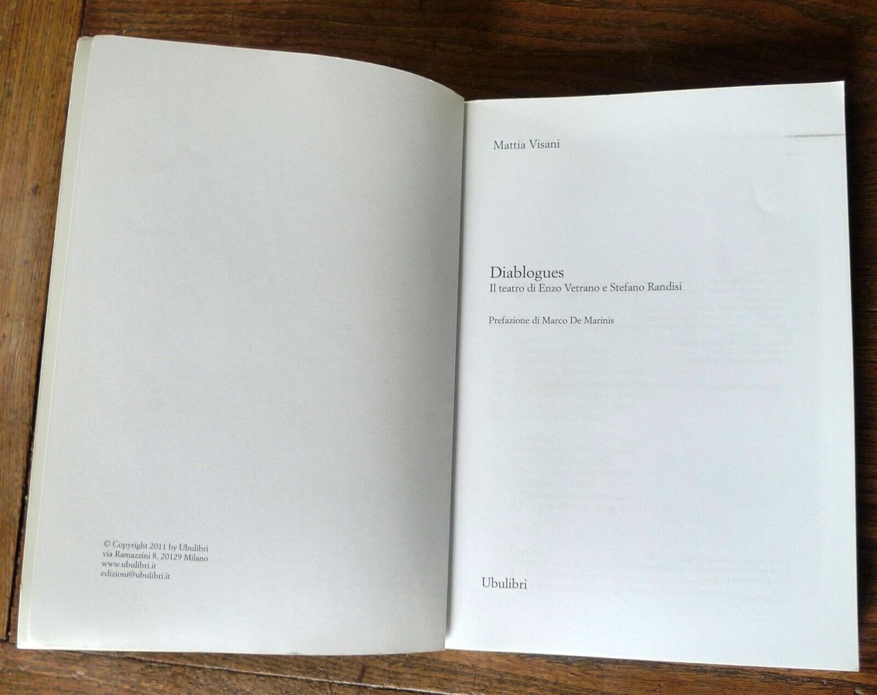 <font rwr="1" style=""><div><div></div></div><div><div><font face="Verdana" size="5"><b>Mattia Visani,</b></font></div><div><font face="Verdana" size="5"><b><i>DIABLOGUES.</i></b></font></div><div><font face="Verdana" size="5"><b><i>IL TEATRO DI ENZO VETRANO E STEFANO RANDISI.</i></b></font></div><div><font face="Verdana" size="5"><b>Prefazione di Marco De Marinis.</b></font></div><div><font face="Verdana" size="5"><b>Ubulibri, Milano 2011,</b></font></div><div><font face="Verdana" size="5">brossura, 22x16 cm., pp.189.</font></div><div><font face="Verdana" size="5">illustrazioni in nero e a colori su tavole</font></div><div><font face="Verdana" size="5">in carta patinata fuori testo,</font></div><div><font face="Verdana" size="5">collana I LIBRI BIANCHI,</font></div><div><font face="Verdana" size="5">ISBN: 978-88-7748-325-6,</font></div><div><font face="Verdana" size="5">peso: g.500</font></div><div><font face="Verdana" size="5"><br></font></div><div><font face="Verdana" size="5">cod.9120</font></div><div><font face="Verdana" size="5"><br></font></div><div><font face="Verdana" size="5"><b>CONDIZIONI DEL LIBRO:</b> ottime,</font></div><div><font face="Verdana" size="5">minime imperfezioni alla copertina,</font></div><div><font face="Verdana" size="5">per il resto come nuovo</font></div></div><table width="100%" cellspacing="0" cellpadding="10" border="0" style="font-size: large; font-family: Arial;"><tbody><tr><td valign="top"><table width="100%" cellpadding="20" border="0"><tbody><tr><td><p><br></p></td></tr>