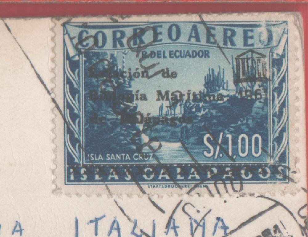 Vista parcial al N. Quito. Viaggiata 1961. Francobollo Galapagos sovrastampato