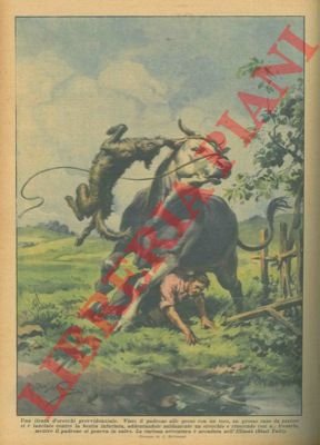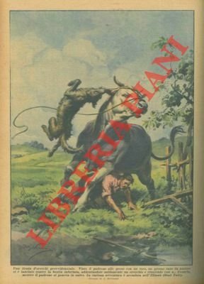 Visto il padrone alle prese con un toro, un grosso cane da pastore si é lanciato contro la bestia infuriata, addentandole saldamente un orecchio e riuscendo a frenarla mentre il padrone si poneva in salvo.