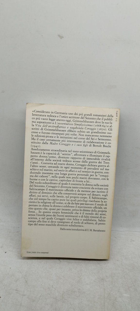 h.j. chr.von grimmelshausen vita dell'arcitruffatrice e vagabonda coraggio. , einaudi 1981 italiano, 196 °°