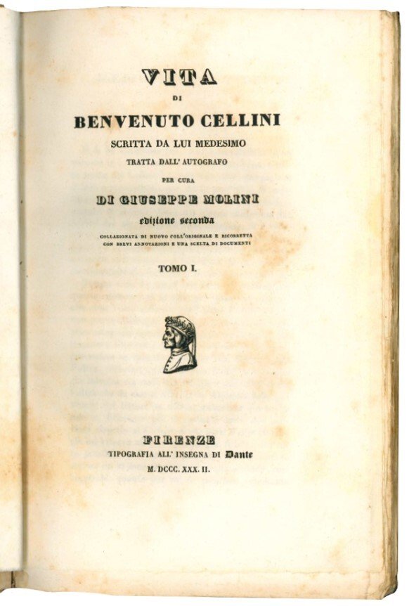 Vita di Benvenuto Cellini scritta da lui medesimo. Tratta dall'autografo per cura di Giuseppe Molini. Tomo I e II.