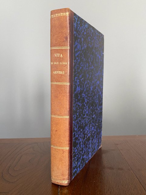 In-8° (cm. 21,5), legatura coeva in mezza pelle con titolo in oro al dorso, pp. 403 [1] in ottimo stato, lievissime fioriture. Edizione originale della biografia del rosminiano che predicò a Londra e Dublino. Ottimo esemplare. (SL1)
