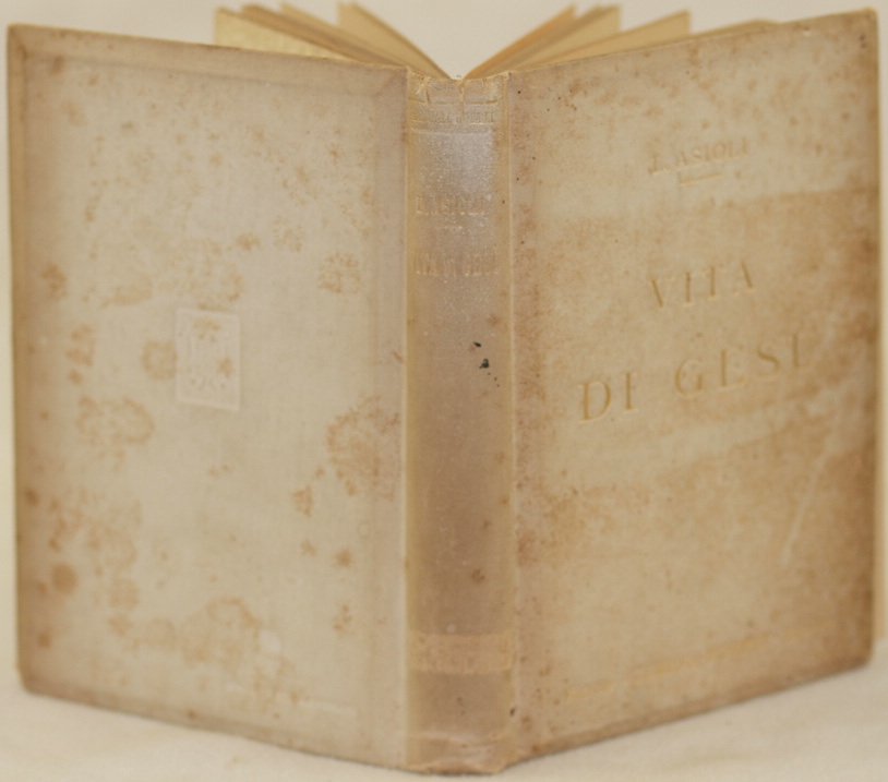 In 16. Dim. 15,5x10,5 cm. Pp. XI+253+53+(9). Seconda edizione del 1917 di questa opera sulla vita di Gesu scritta da Luigi Asioli. All'intrno mappa colorata della Terra Santa. In discrete condizioni. Copertina cartonata editoriale in buone condizioni generali con lievi usure ai margini e dorso. Legatura in mediocri condizioni, corpo del libro quasi del tutto staccato e qualche pagina staccata. All'interno le pagine si presentano in ottime condizioni con rare fioriture.Second edition of 1917 of this work about the life of Jesus written by Luigi Asioli. Inside coloured map of Holy Land. In fair conditions. Carton editorial cover in good general conditions slightly worn in the edges and spine. Binding in poor conditions, the body fo the book almost totally detached and some page detached. Inside pages are in very good conditions with occasional foxings.