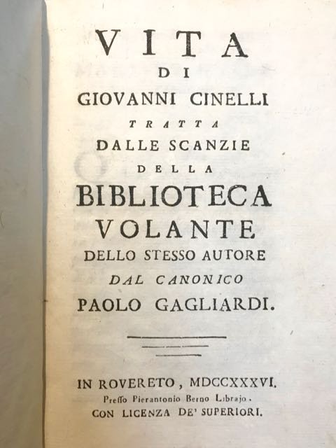 Vita di Giovanni Cinelli tratta dalle scanzie della Biblioteca volante dello stesso autore.