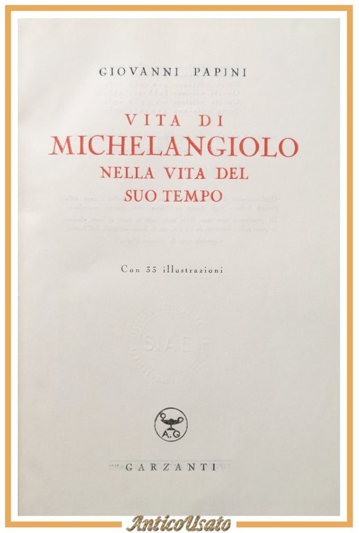 VITA DI MICHELANGELO NELLA VITA DEL SUO TEMPO Giovanni Papini 1951 Garzanti Libr
