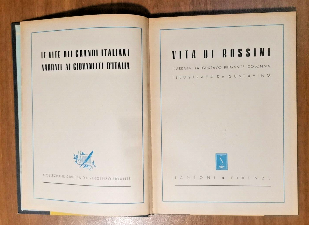 VITA DI ROSSINI di Gustavo Brigante Colonna 1947 libro illustrato Gustavino