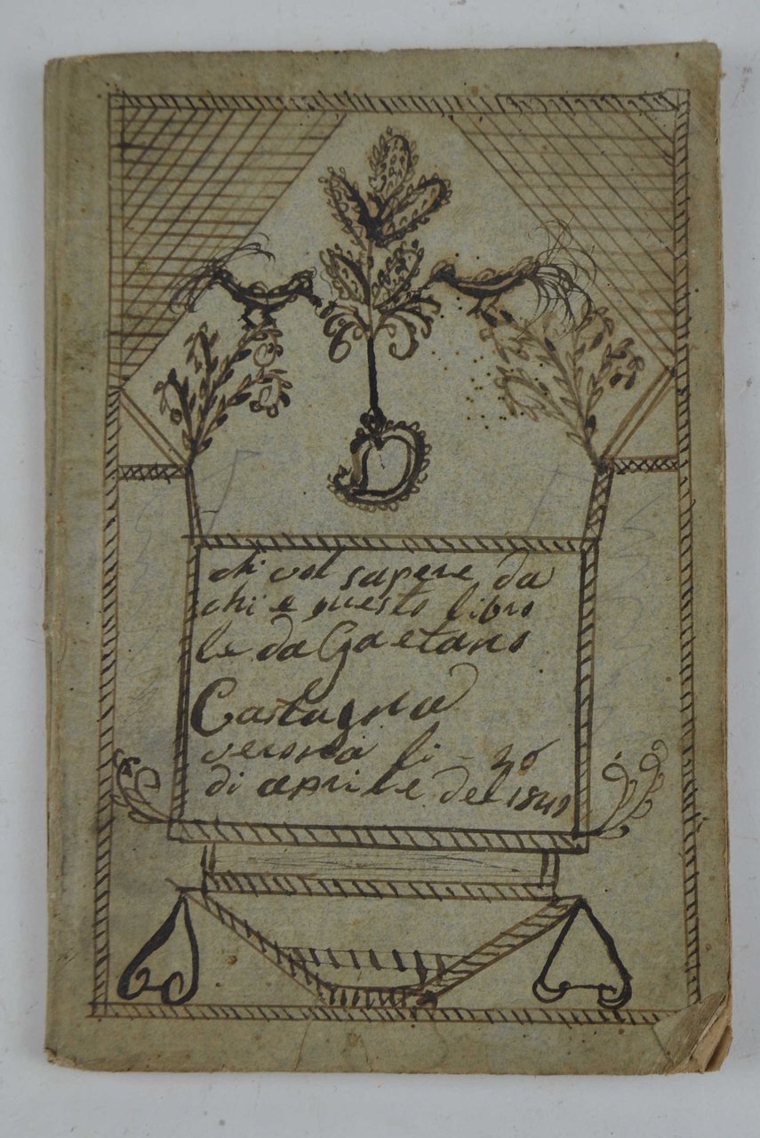 Cm. 17,5, pp. 64. Con frontespizio figurato e 14 graziose incisioni xilografiche nel testo di gusto popolare. Brossura coeva in carta azzurra con disegno decorativo originale e titoli calligrafici. Qualche gora leggera, ma complessivamente genuino ed in buono stato di conservazione.