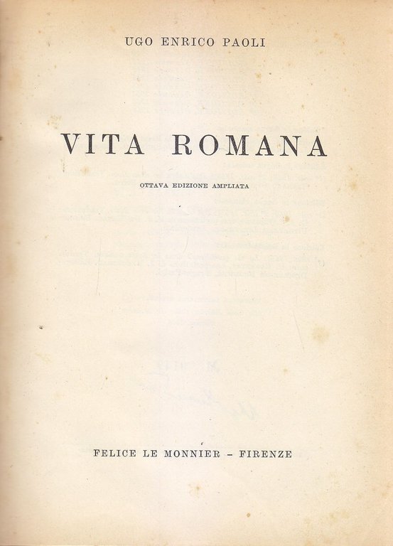 VITA ROMANA di Ugo Enrico Paoli 1958 Felice Le Monnier editore libro archeologia