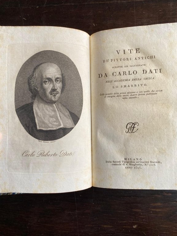<span style="font-style: normal;">In-8° (cm. 19,9), legatura coeva in mezza tela con titolo in oro al dorso (lievi tracce d'uso), piatti marmorizzati; pp. 294 [2] in ottimo stato (lievi e sporadiche fioriture); con 1 ritratto dell'autore in tondo inciso in rame da Paolo Caronni all'antiporta fuori testo; </span><i>Colle postille della prima edizione e con quelle che scritte in margine dello stesso Autore furono pubblicate nella seconda</i>. Edizione «più ricca di ogni altra finora impressa» [Gamba 427]; dedicata a Luigi XIV Re di Francia e di Navarra. Apre l'opera un elogio all'autore di Giuseppe Pelli, che fu scrittore, funzionario granducale e direttore della Galleria degli Uffizi dal 1775 al 1793. Ottimo esemplare. (NQ9)