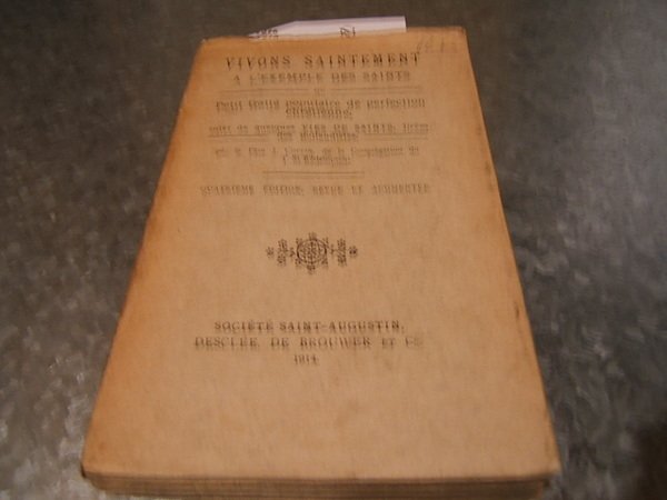 COPPIN, J. Vivons saintement a l’exemple des saints ou Petit traité populaire de perfection chrétienne, suivi de quelques vies de saints, tirées des Bollandistes, par le Père ---. Soc. Saint-Augustin. 1914 424 p. (19 cm) Rustica. Sello ant. prop. N1 (Ref.7275) religion espiritualidad frances vidas de santos