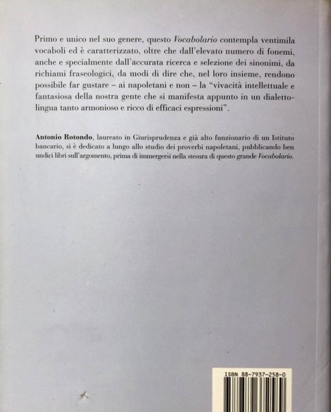 Antonio Rotondo, laureato in Giurisprudenza e già alto funzionario di un Istituto bancario, si è dedicato a lungo allo studio dei proverbi napoletani, pubblicando ben undici libri sull'argomento, prima di immergersi nella stesura di questo grande Vocabolario.