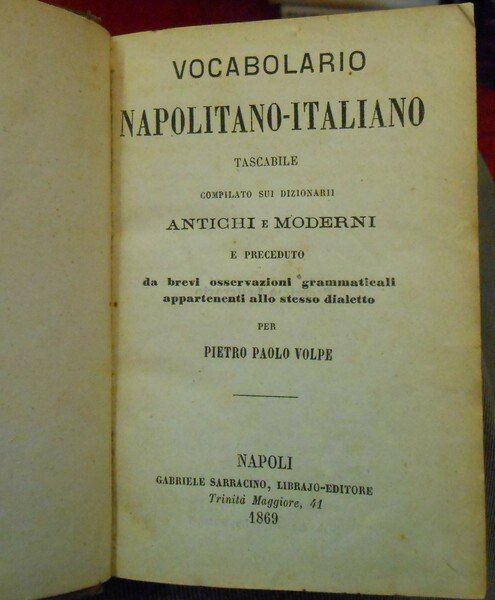 VOCABOLARIO NAPOLITANO-ITALIANO TASCABILE COMPILATO SUI DIZIONARII ANTICHI E MODERNI E PRECEDUTO DA BREVI OSSERVAZIONI GRAMMATICALI APPARTENENTI ALLO STESSO DIALETTO