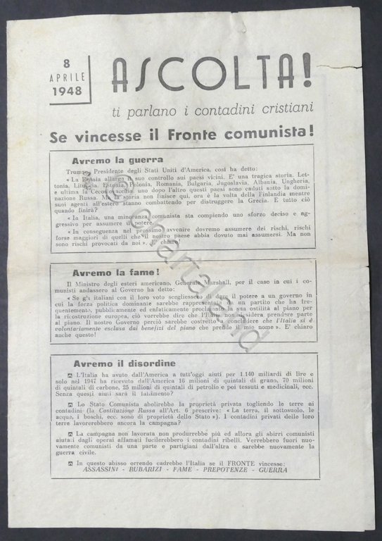 Volantino anticomunista della Democrazia Cristiana - Elezioni Politiche 1948