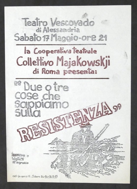 Volantino Avanguardia Operaia Coop. Teatrale Majakowskji - Resistenza - 1975