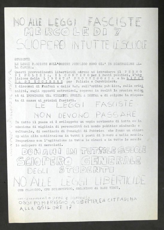 Volantino Collettivi Studenteschi - Sciopero Generale degli Studenti - 1975