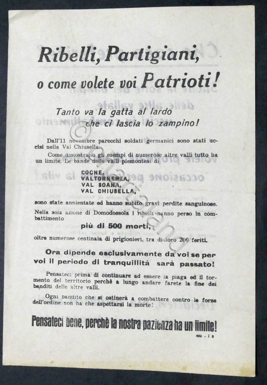 Volantino RSI - Propaganda contro i Partigiani di Piemonte e Valle d'Aosta