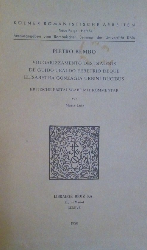 VOLGARIZZAMENTO DES DIALOGS DE GUIDO UBALDO FERETRIO DEQUE ELISABETHA GONZAGIA URBINI DUCIBUS