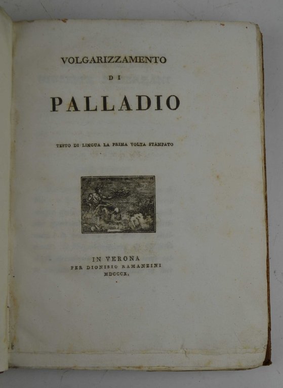 Cm. 25, pp. xiv, 300. Con una vignetta al frontespizio, alcune testatine e capolettera in xilografia. Solida legatura coeva del tempo in mezza pelle con punte. Esemplare genuino, marginoso e ben conservato. Stimata edizione curata da Paolo Zanotti in cui viene stilata una vera summa a favore dei doveri dell'agricoltore e, più in generale, del fattore. Con un calendario ad istruire sui compiti degli stessi nelle varie stagioni. Cfr. Gamba e Westbury.
