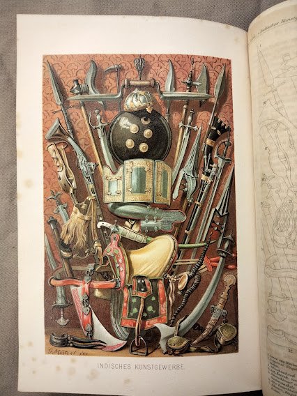 In 8°, m. pelle, pp. VIII + 778. L'opera è dotata di 9 cromolitografie e numerosissime inc., n. e nn. nel t., raffiguranti costumi, abitazioni, armi, arnesi, ecc. delle popolazioni trattate nel vol. Lettere e fregi in o. al d. Fioriture. Stampa a carattere gotico. Disponiamo solo del vol. sopra descritto. T. A.