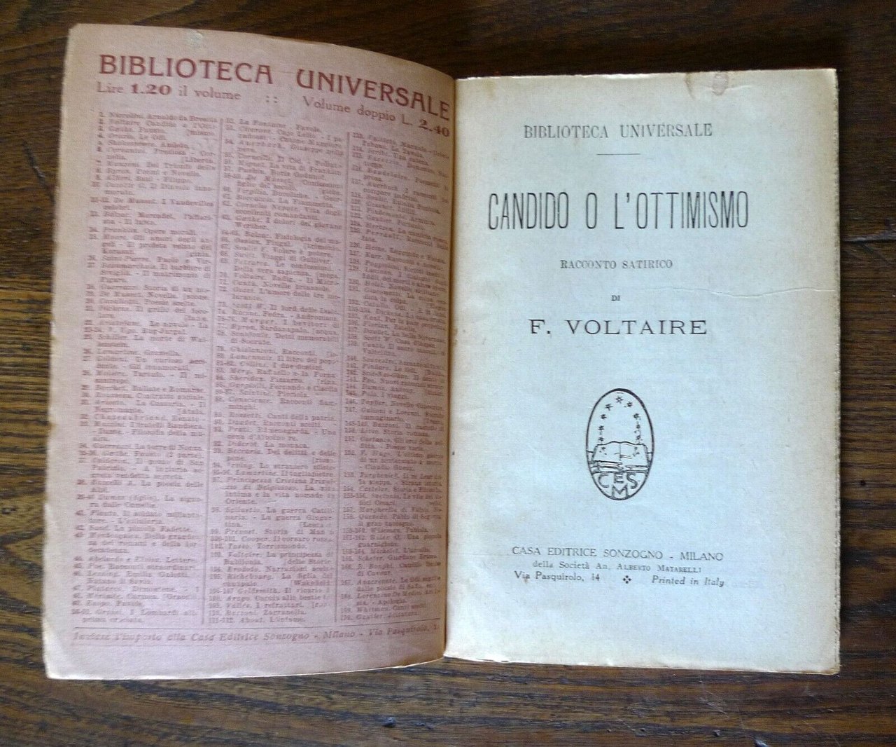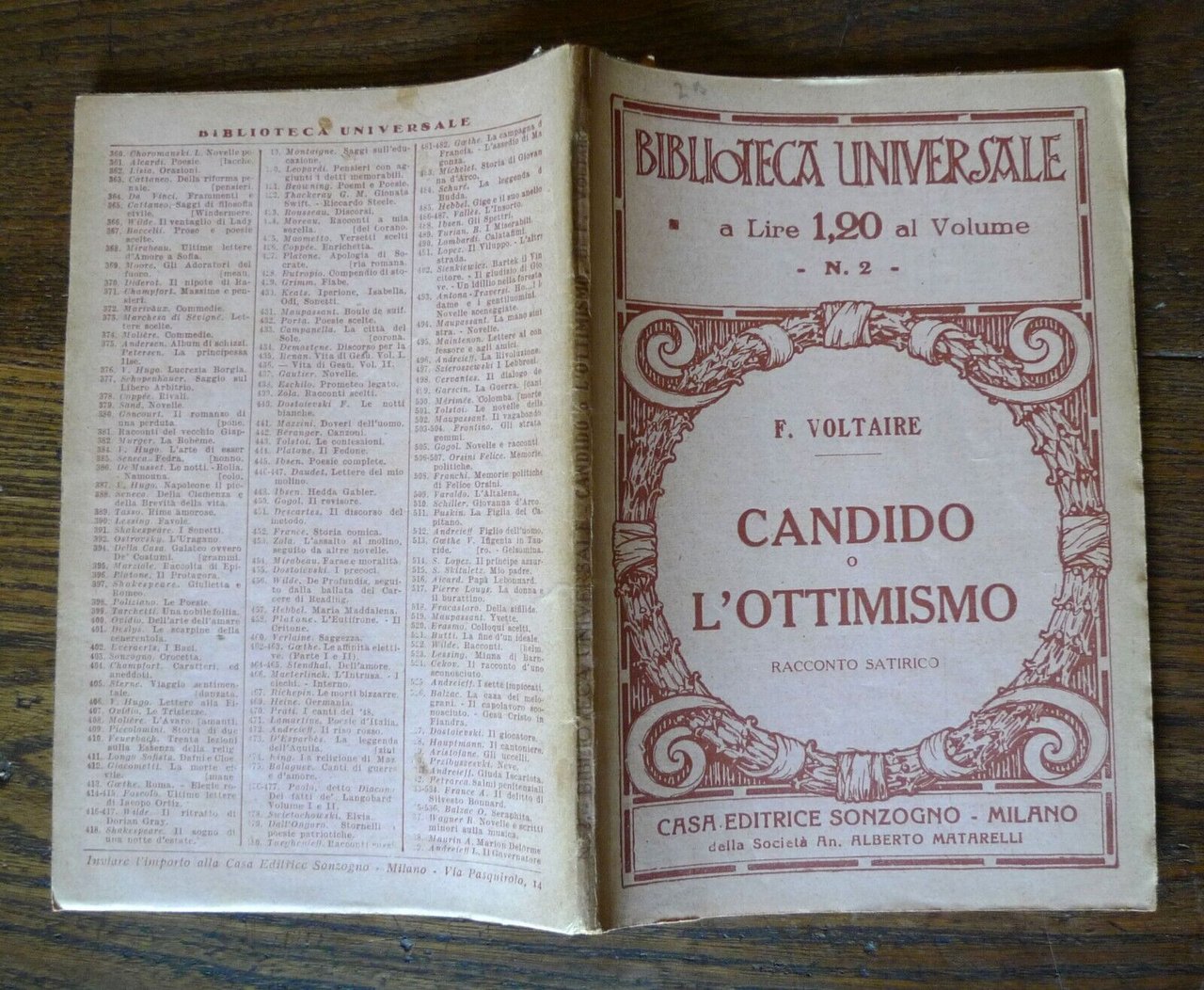 Voltaire,CANDIDO O L'OTTIMISMO,1936 Sonzogno BIBLIOTECA UNIVERSALE