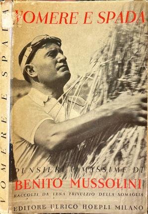 Pensieri e massime raccolti dagli scritti e discorsi di Benito Mussolini a cura di Lena Trivulzio della Somaglia. Unica edizione autorizzata. In 16° (cm 17,1 x 11), pp. 159. Bross. tit. nero al dorso avana. Sovrac. tit. nero al dorso avorio. Segni di consunzione, strappetti ai margini e alle cuffie della sovrac. Rare gore alle sguardie. Lievi fioriture ai tagli. Tagli e pp. lievemente ingialliti. Tracce di polvere. Buone condizioni.