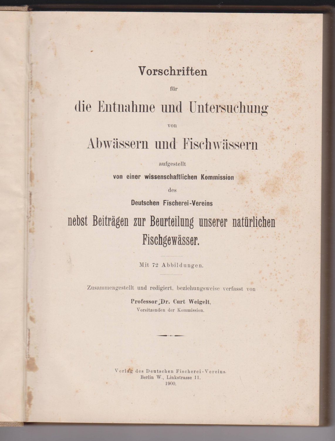 Vorschriften für die Entnahme und Untersuchung von Abwässern und Fischwässern. (Originalausgabe!). | Libri antichi e moderni | Weigelt, Curt (Hrsg.)
