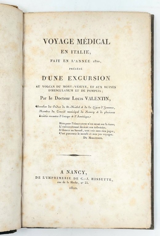 Voyage médical en Italie, fait en l'année 1820, précédé d'une excursion au Volcan du Mont-Vésuve, et aux ruines d'Herculanum et de Pompeia.