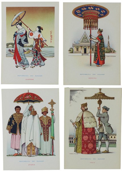 VSEVOLODE NICOULINE "L'OMBRELLO NELLA STORIA" Serie 1a: LOTTO DI 4 CARTOLINE
