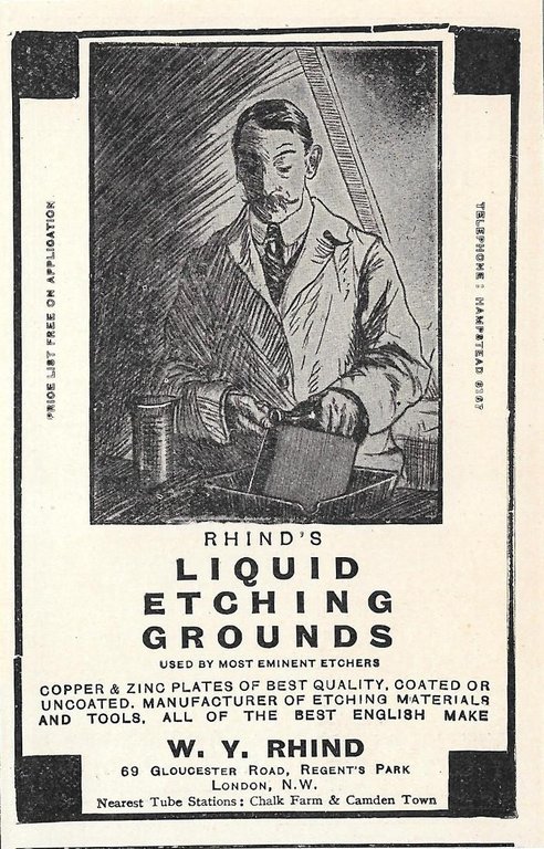 W.Y. Rhind, liquid etching grounds. Advertising 1921